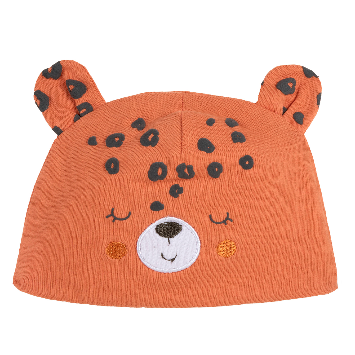 Caciulita cu urechi, mustati si chip de animalut, confectionata din 100% bumbac , detine certificare Oeko-Tex, calitate verificata pentru copilul tau.