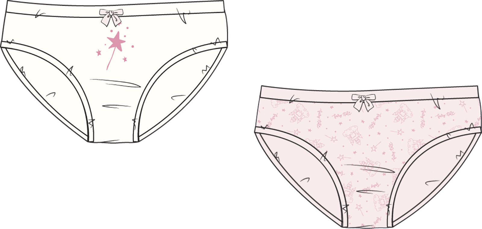 Set format din 2 chilotei din jerse elastic, din – 95%bumbac organic tratat antibacterian, 5% elastan cu imprimeuri delicate si fundite. Bordati cu mansete elastice se fixeaza bine. Produs cu certificare Oeko-Tex: calitate pentru bebelusi