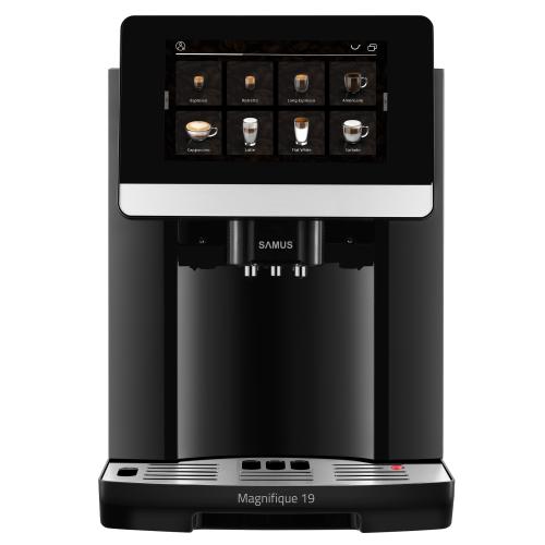 Black Friday Espressor automat Samus Magnifique 19, 1450 W, 19 bari, Ecran IMD 7inch, Rezervor apa 1.7l, 20 tipuri bauturi, Rasnita incorporata, Capacitate boabe 250 gr (Negru)