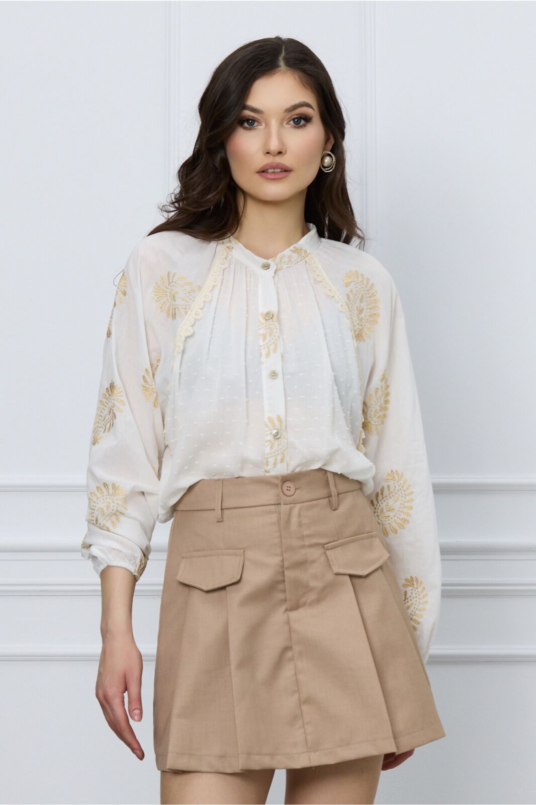 Black Friday 2025 Fusta Andra bej scurta cu pliuri