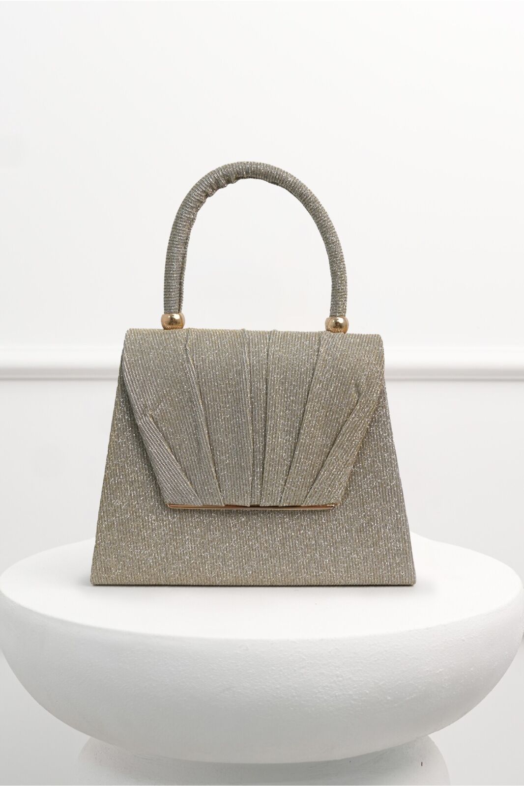 Black Friday 2025 Gentuta aurie din glitter cu detalii plisate si maner rotund
