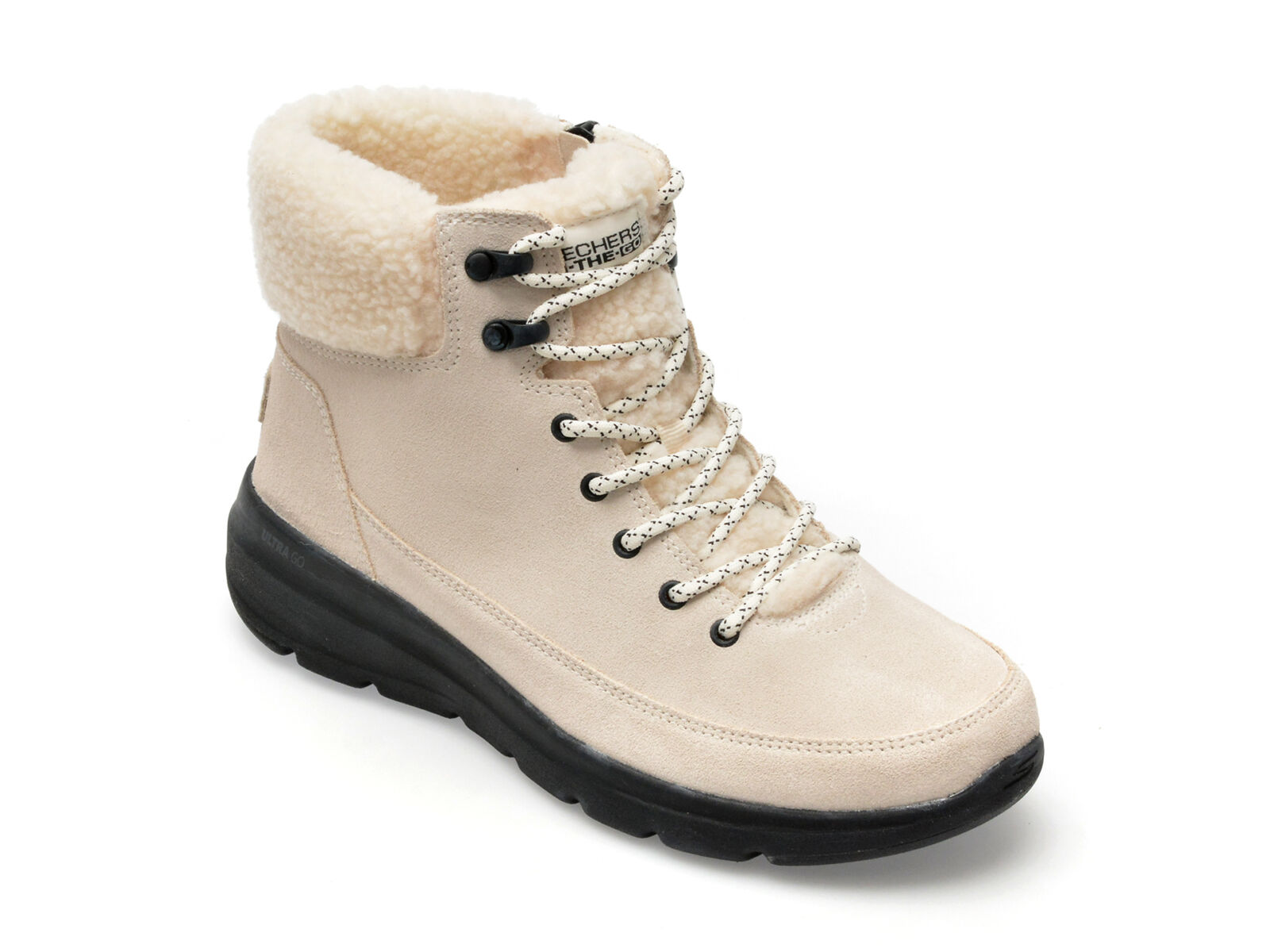 Black Friday 2022 Ghete SKECHERS albe, GLACIAL ULTRA, din piele intoarsa