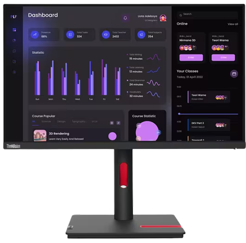 Monitor IPS LED Lenovo ThinkVision 23.8inch T24i-30, Full HD (1920 x 1080), VGA, HDMI, DisplayPort, Pivot, Boxe (Negru)