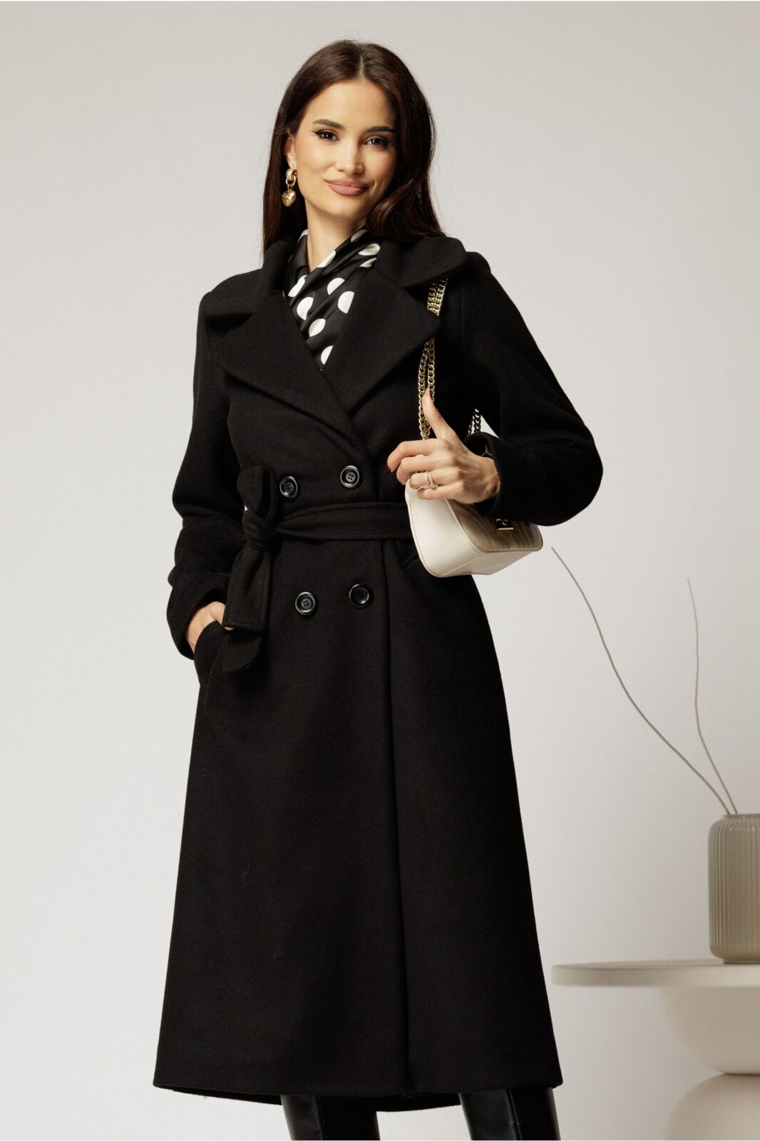Un palton bine ales te poate pune in valoare in orice situatie. Un palton negru midi cu croiul drept, este o alegere excelenta intr-o zi de toamna iarna. palton midi negru de toamna iarna cordon in talie guler cu rever inchidere cu nasturi are buzunare captusit pe interior Material: stofa Compozitie: 100% poliester Fotomodelul poartă mărimea:  S  | Înălțime:  173 cm   Fiecare produs este măsurat individual. Te rugăm să consulți ghidul  de mărimi pentru alegerea corectă a mărimii!