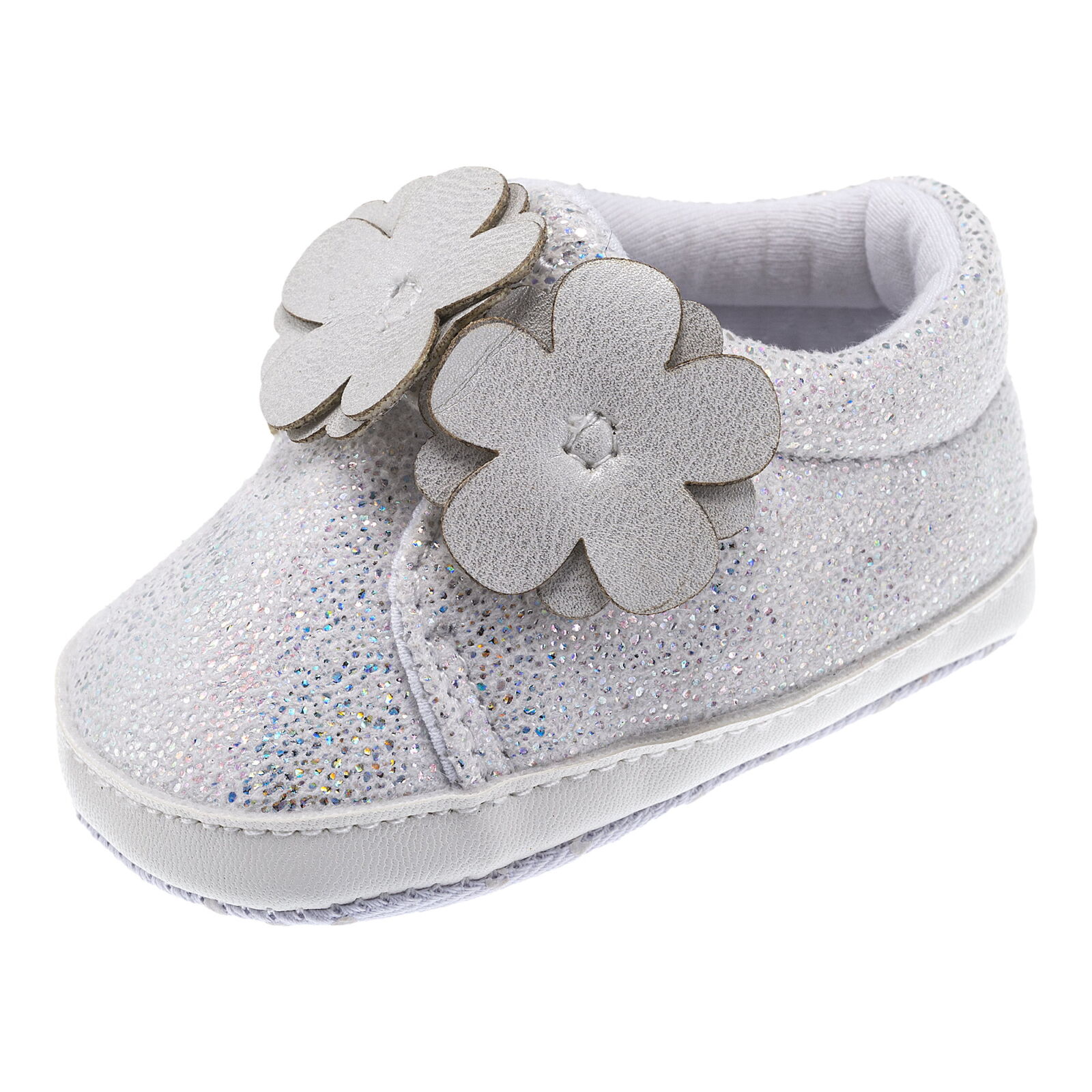 Sneakers cu floricele, practici si confortabili, inchidere reglabila cu velcro, cu forma rotunjita si talpa moale din material textil garantand libertaea de miscare naturala a piciorului. Pantofiorii sunt usori, flexibili, confortabili, din materiale care permit trecerea aerului. Curatati produsul cu o laveta delicata umeda. NU expuneti produsul la surse de caldura. Nu se recomanda spalarea in masina de spalat. NU uscati in masina pentru uscare!