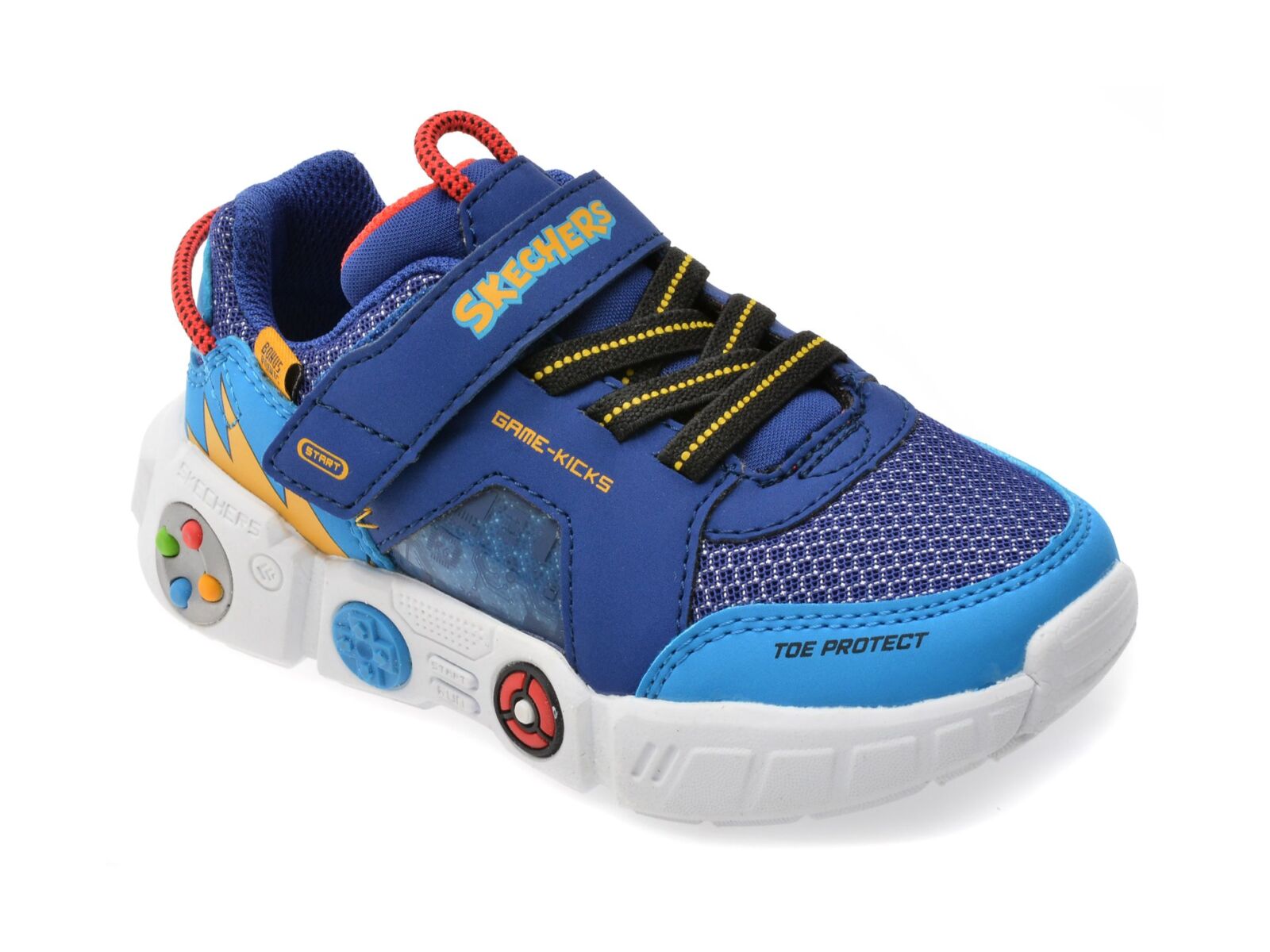 Pantofi sport SKECHERS bleumarin, GAMETRONIX, din material textil , Pentru: Baieti , Brand: Skechers , culoare: Bleumarin , Material exterior: Material textil , Material talpa: Cauciuc termoplastic , Tip inchidere: Velcro . Livrare gratuita pentru comenzile de peste 299 RON acasa si in locker. Retur gratuit de acasa sau in locker.