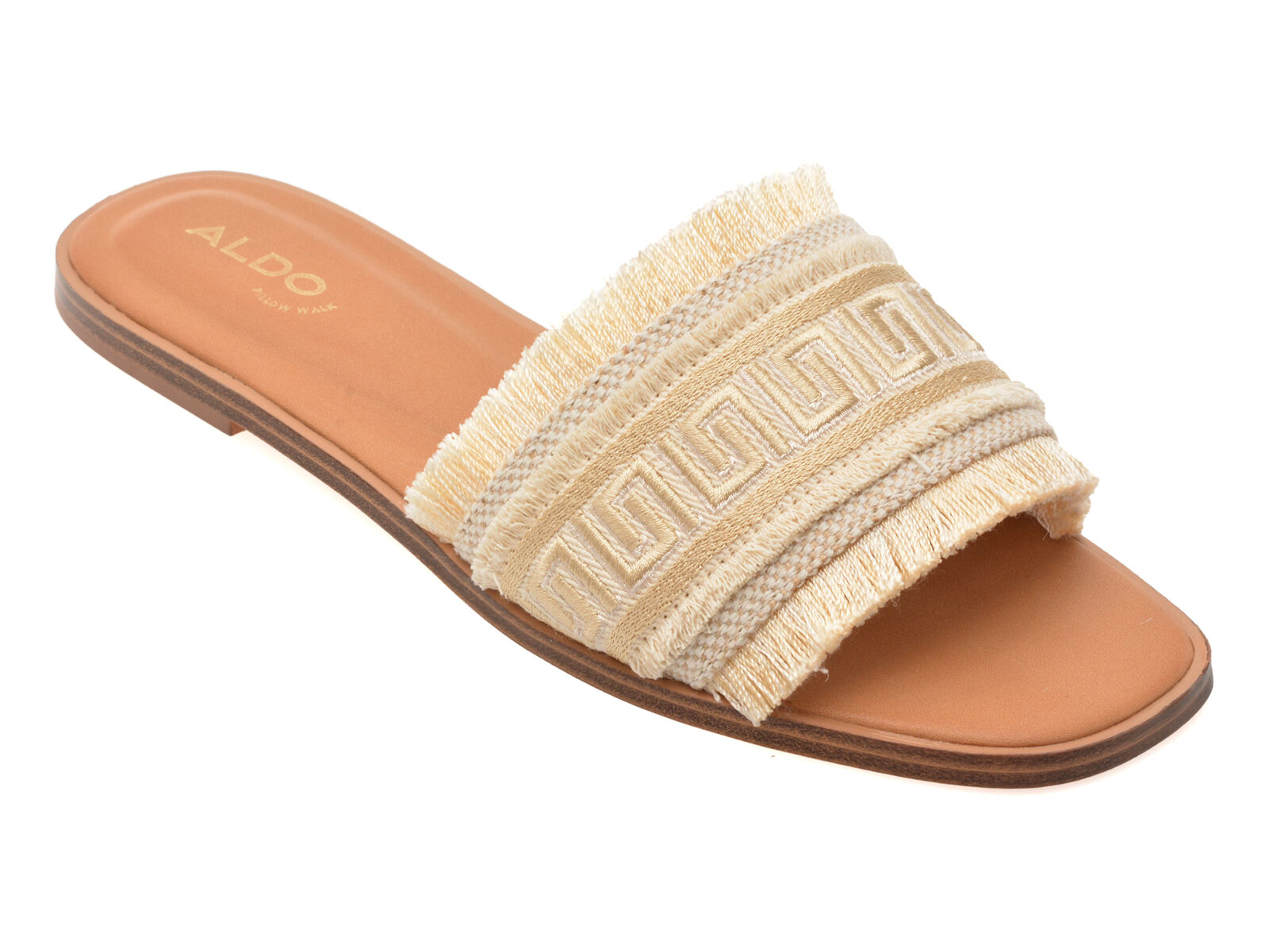 Papuci ALDO aurii, NALANI 711, din material textil , Pentru: Femei , Brand: Aldo , culoare: Auriu , Material exterior: Material textil , Material talpa: pvc , Tip inchidere: Slip-on . Livrare gratuita pentru comenzile de peste 299 RON acasa si in locker. Retur gratuit de acasa sau in locker.