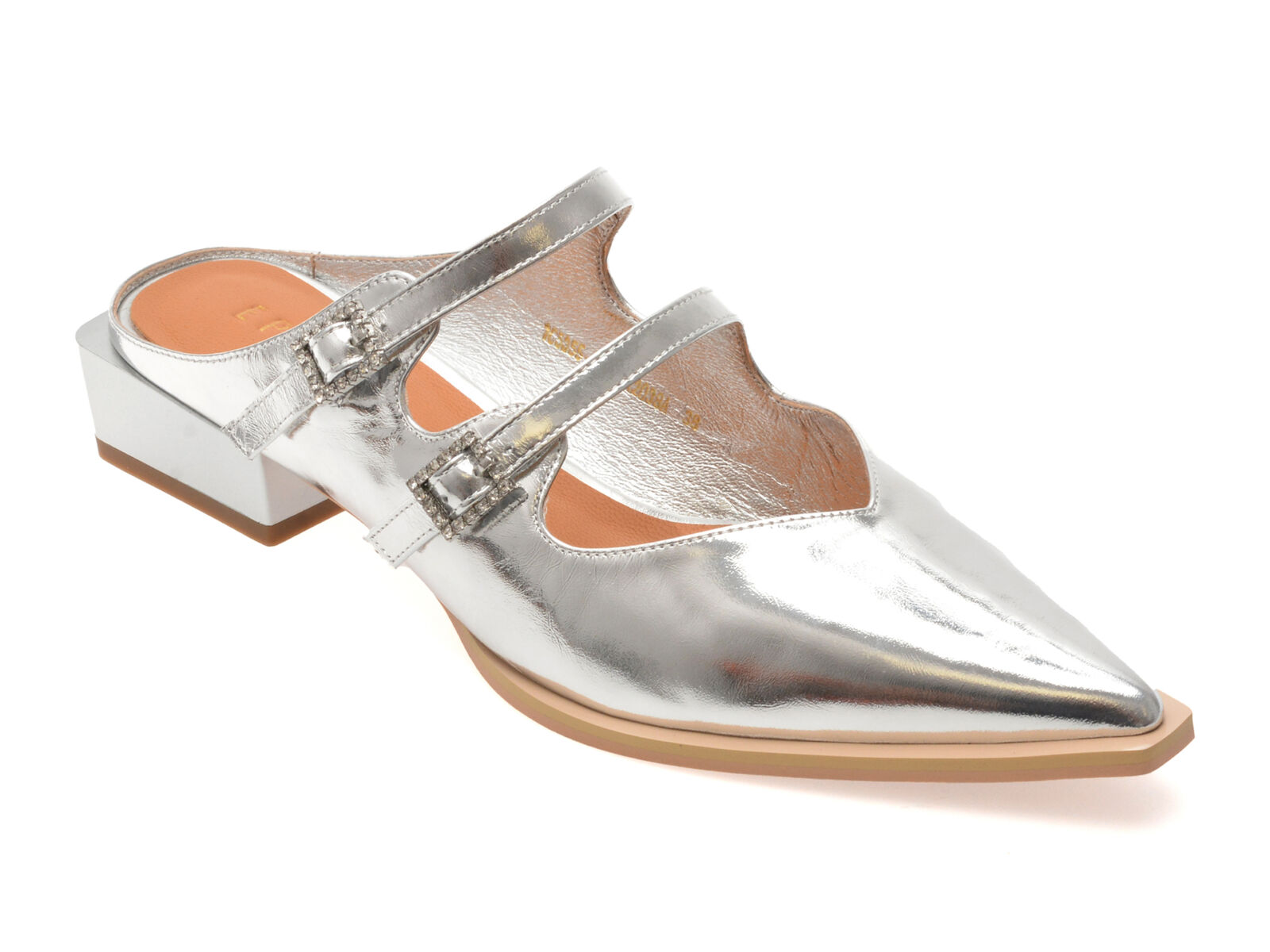 Black Friday 2025 Papuci EPICA argintii, 1C5355, din piele naturala