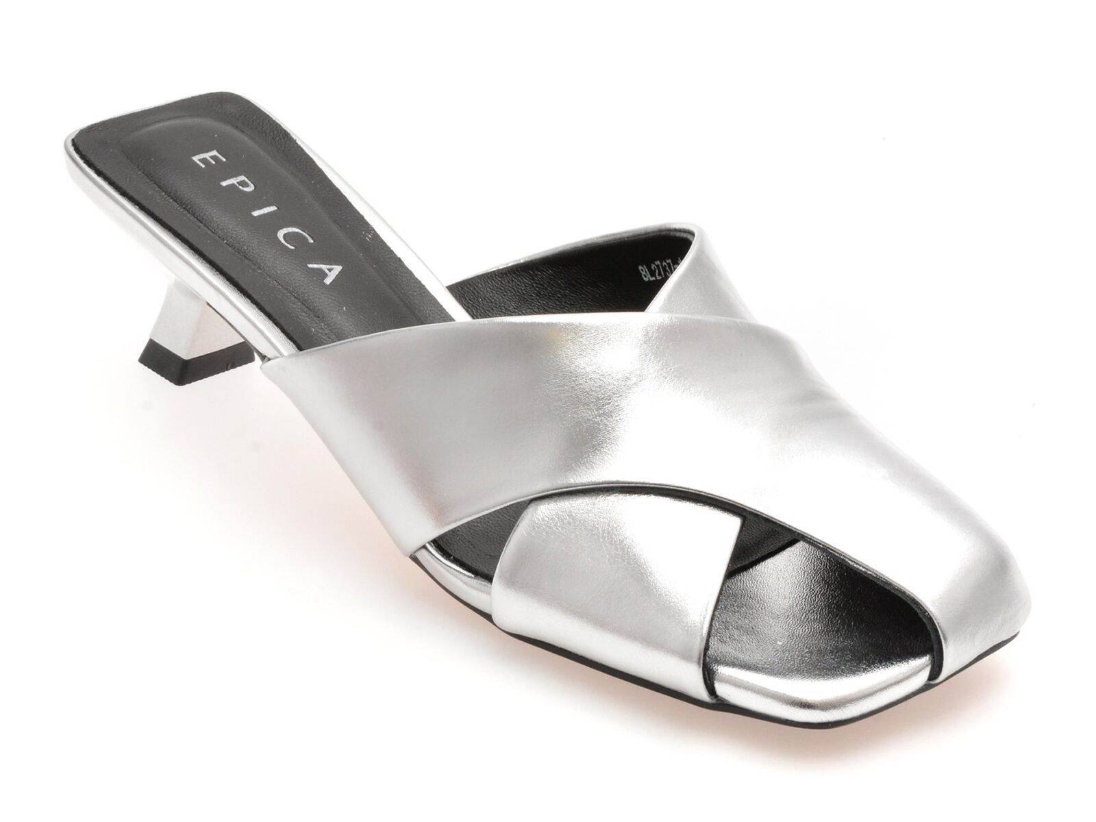 Black Friday 2025 Papuci EPICA argintii, 2737, din piele naturala