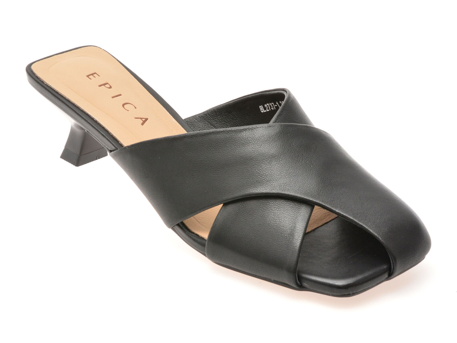 Papuci EPICA negri, 2737, din piele naturala , Pentru: Femei , Brand: Epica , culoare: Negru , Material exterior: Piele naturala , Material talpa: pvc , Tip inchidere: Slip-on . Livrare gratuita pentru comenzile de peste 299 RON acasa si in locker. Retur gratuit de acasa sau in locker.