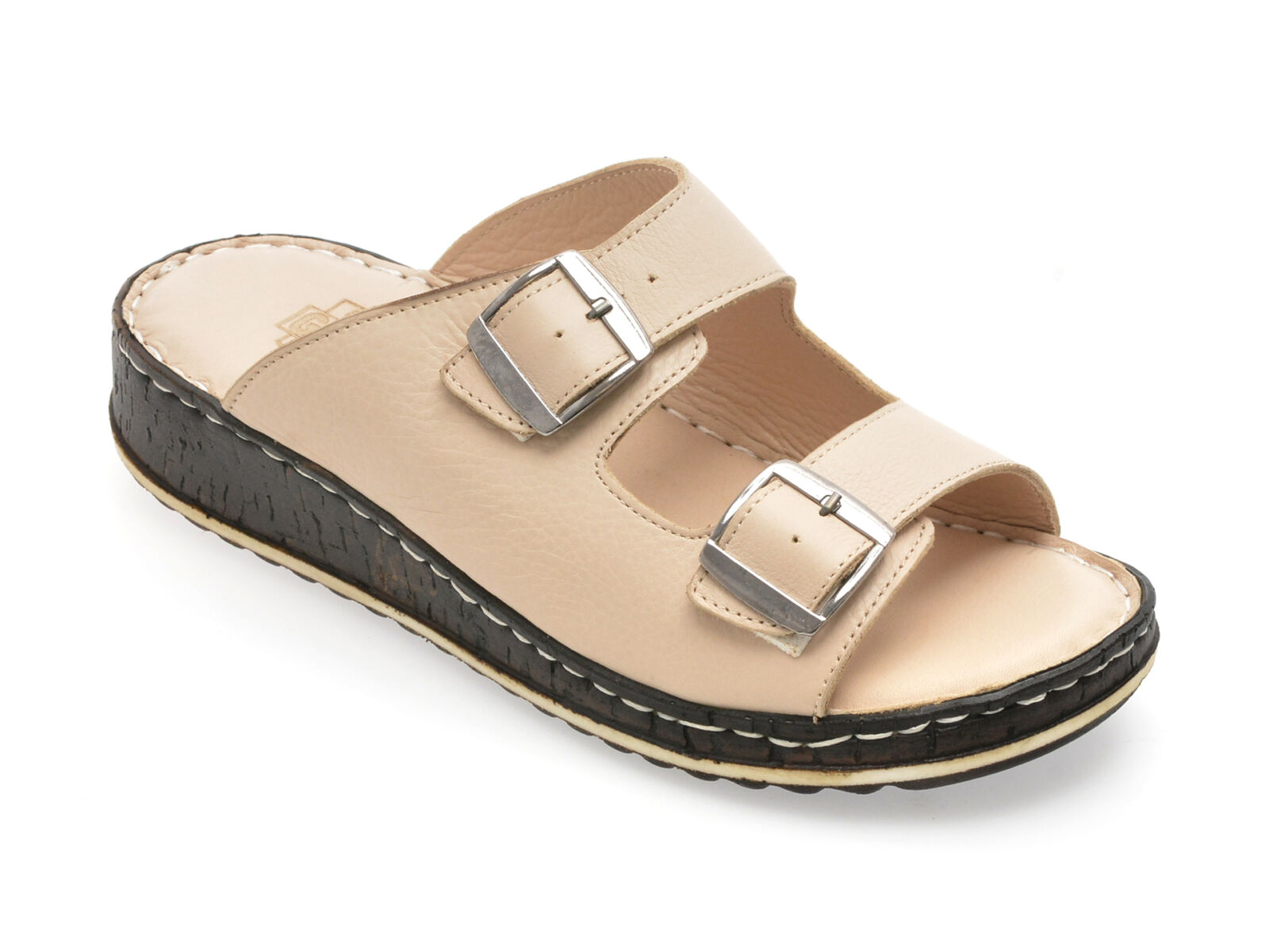 Black Friday 2025 Papuci GOTSI bej, EVP105, din piele naturala