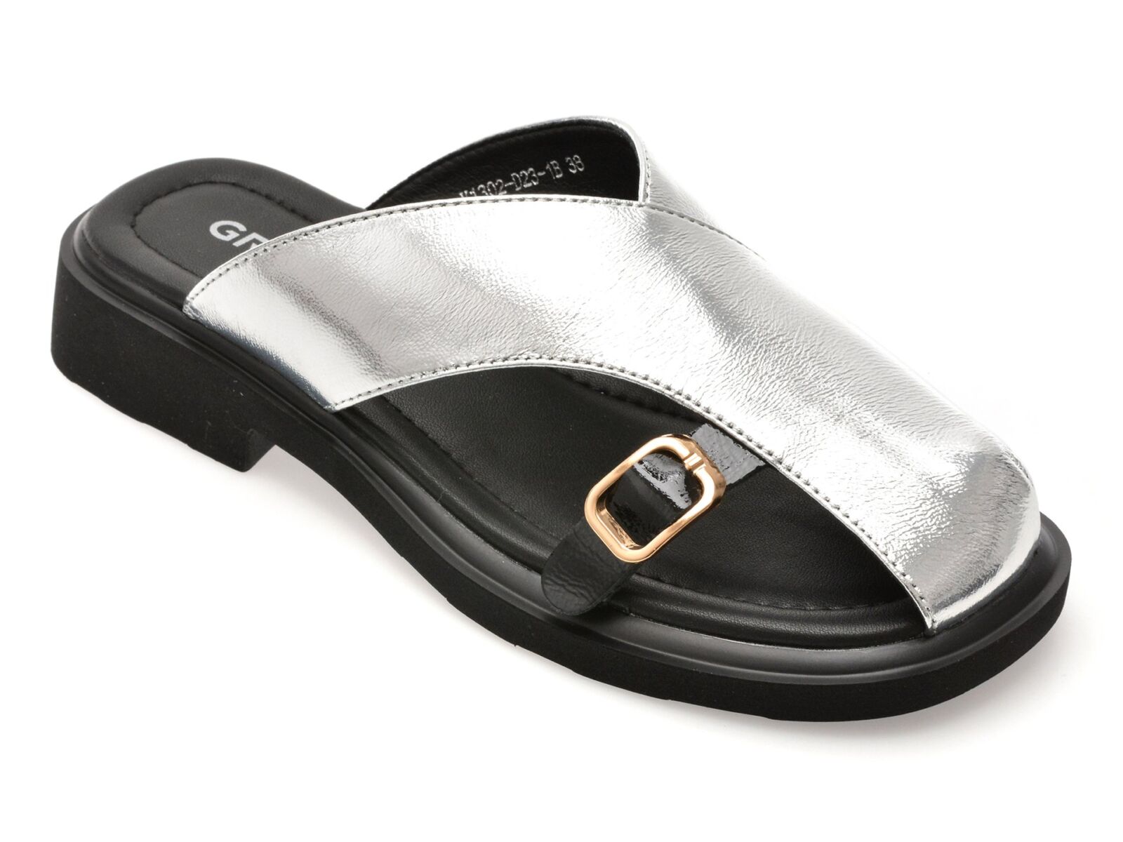 Black Friday 2025 Papuci GRYXX argintii, V1302, din piele naturala