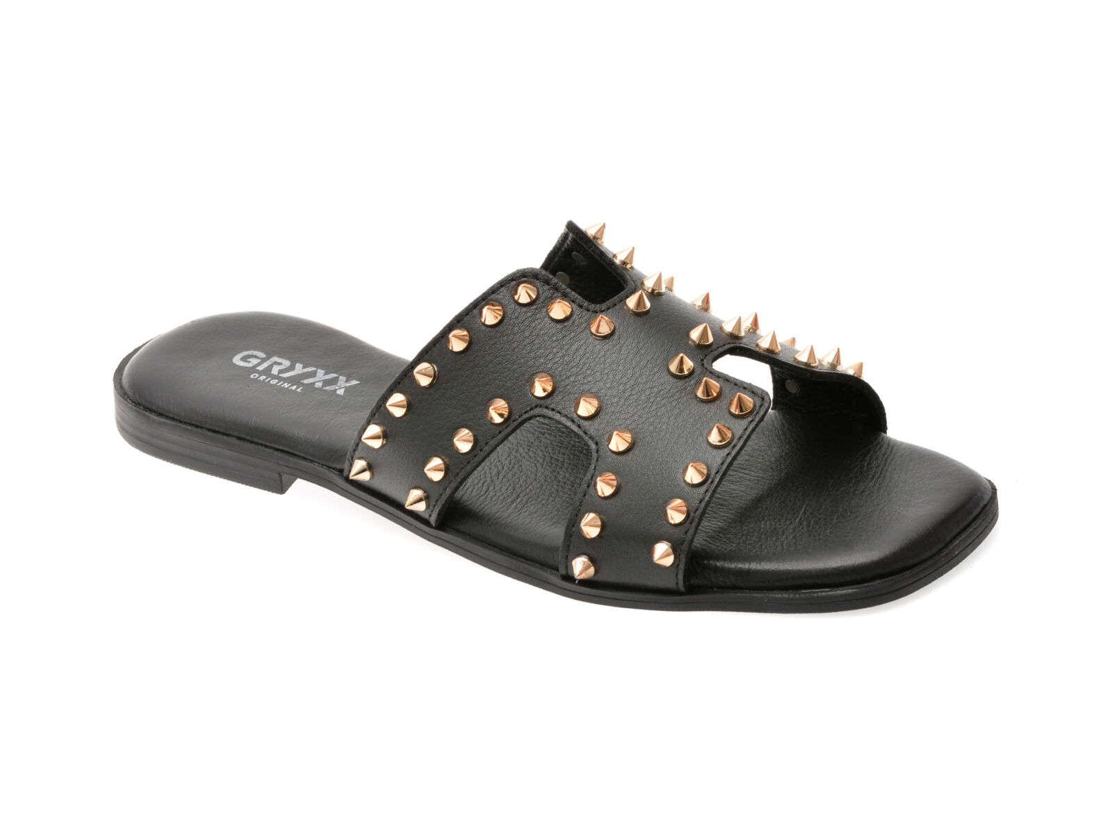 Papuci GRYXX negri, 231360, din piele naturala , Pentru: Femei , Brand: Gryxx , culoare: Negru , Material exterior: Piele naturala , Material talpa: pvc , Tip inchidere: Slip-on . Livrare gratuita pentru comenzile de peste 299 RON acasa si in locker. Retur gratuit de acasa sau in locker.