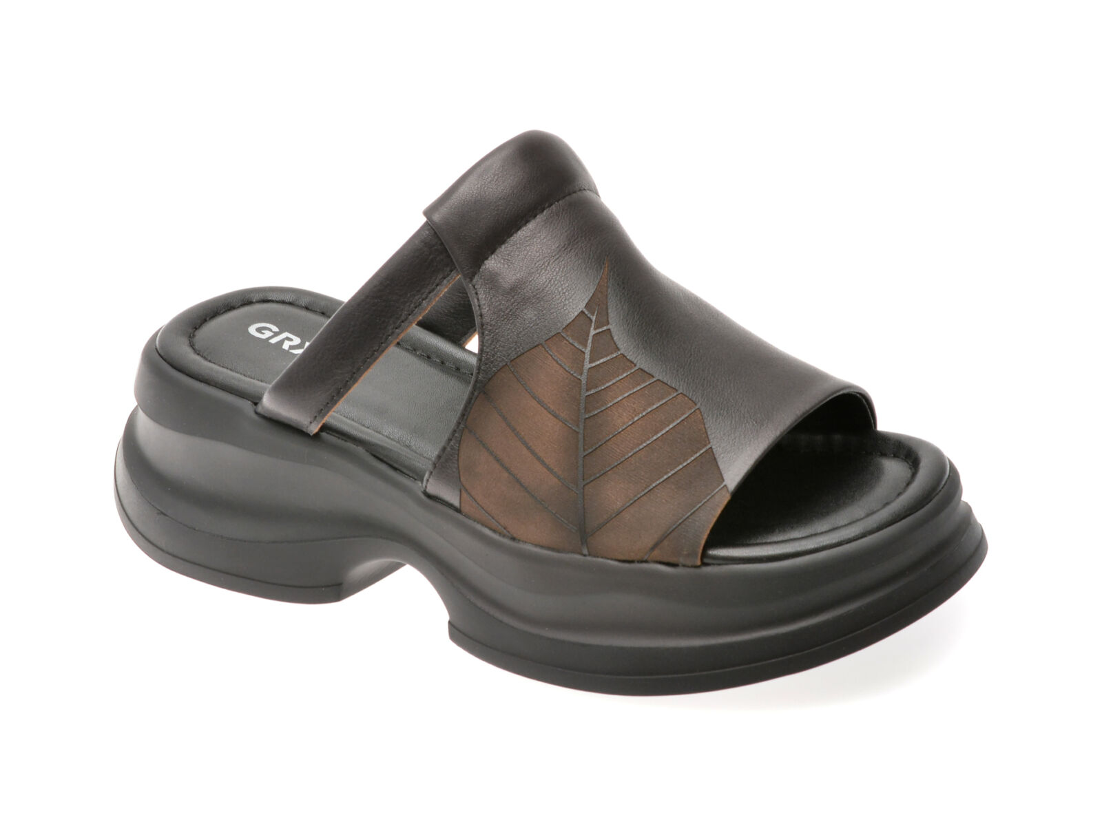 Papuci GRYXX negri, 28619, din piele naturala , Pentru: Femei , Brand: Gryxx , culoare: Negru , Material exterior: Piele naturala , Material talpa: Cauciuc termoplastic , Tip inchidere: Slip-on . Livrare gratuita pentru comenzile de peste 299 RON acasa si in locker. Retur gratuit de acasa sau in locker.