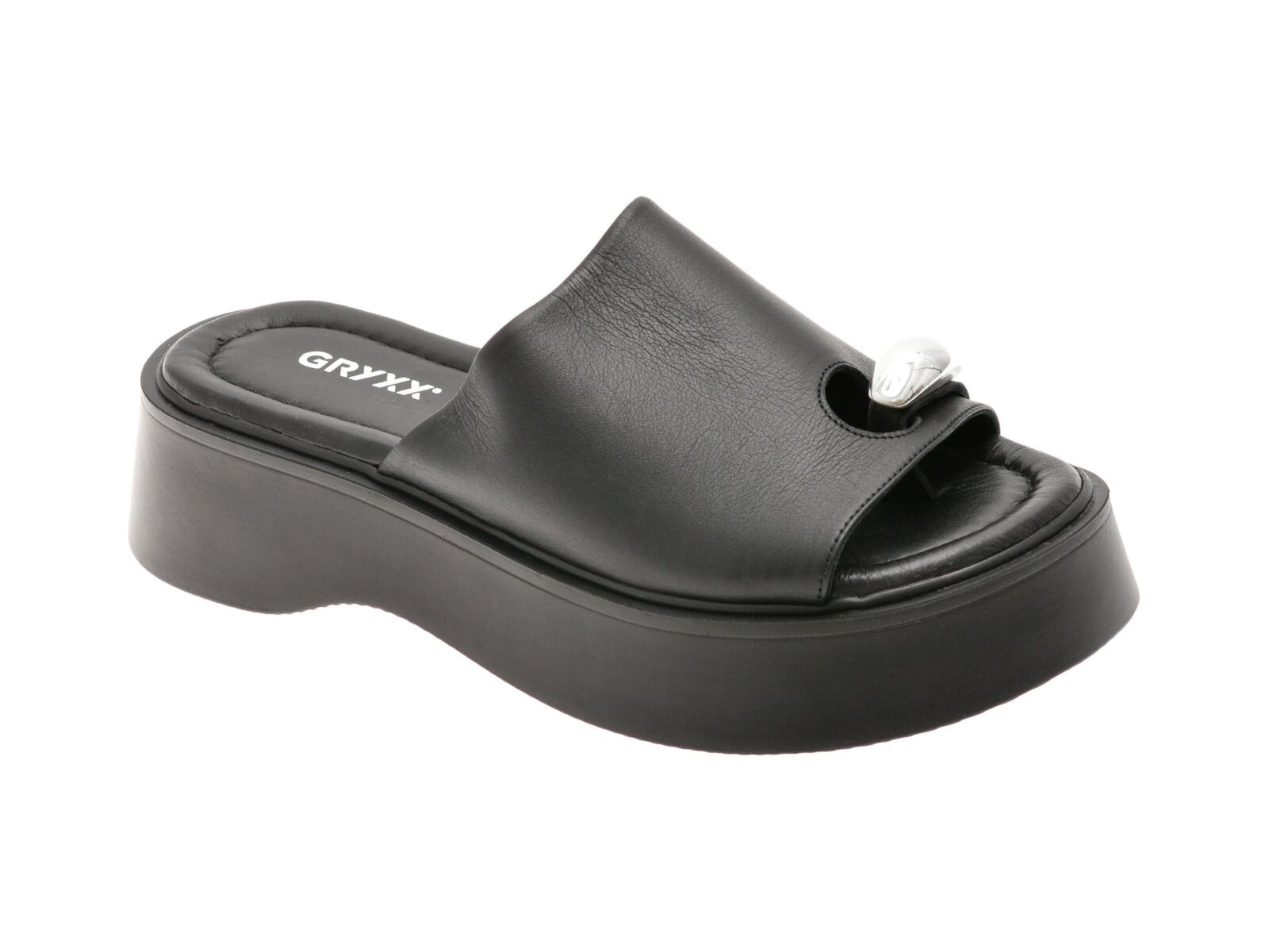 Papuci GRYXX negri, 471126, din piele naturala , Pentru: Femei , Brand: Gryxx , culoare: Negru , Material exterior: Piele naturala , Material talpa: Cauciuc termoplastic , Tip inchidere: Slip-on . Livrare gratuita pentru comenzile de peste 299 RON acasa si in locker. Retur gratuit de acasa sau in locker.