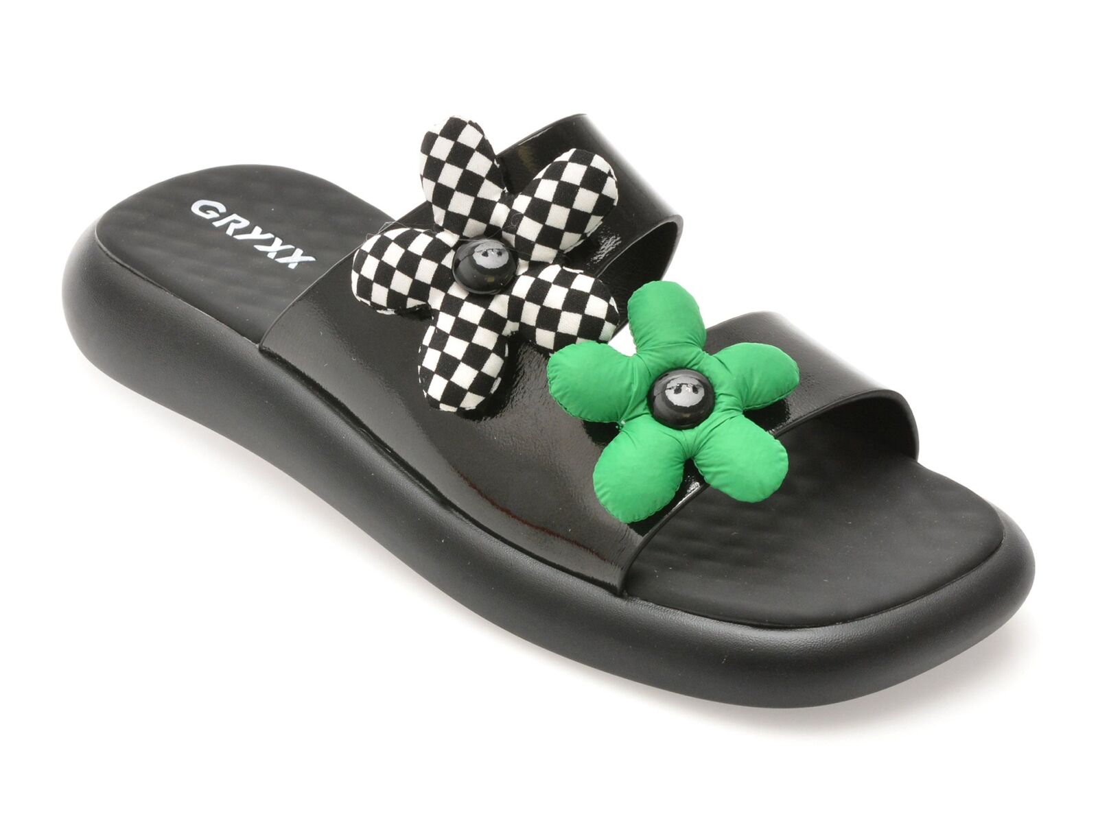 Black Friday 2025 Papuci GRYXX negri, 52252, din piele naturala lacuita