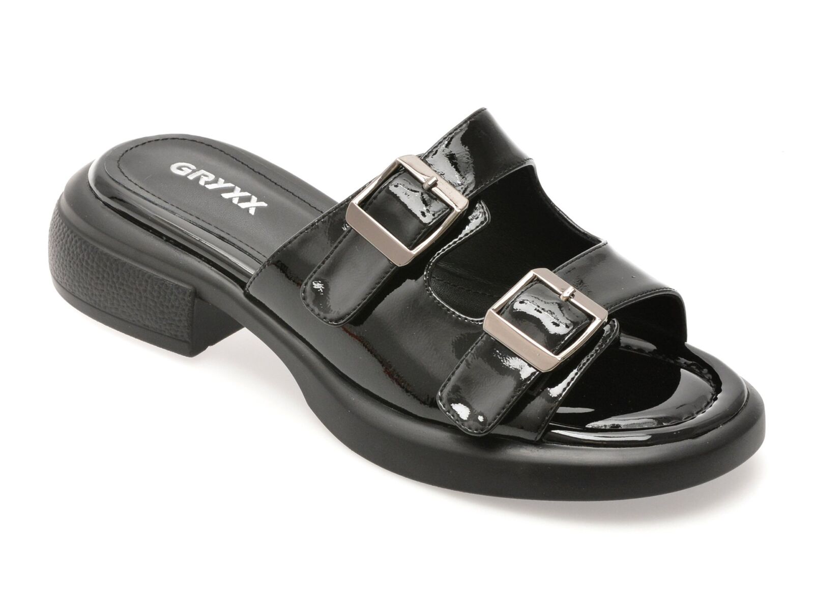 Black Friday 2025 Papuci GRYXX negri, H82, din piele naturala lacuita
