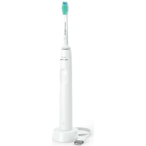 Periuta de dinti sonica electrica Philips Sonicare Seria 2100 HX3651/13, 31000 miscari/minut, Cronometru Quadpacer si SmarTimer, Design ergonomic subţire, 1 capat de periere, Alb Spune adio periutei manuale. Descopera tehnologia sonica. Elimina pana la de 3 ori mai eficient placa bacteriana* Tehnologie sonica Design ergonomic subtire QuadPacer si SmarTimer Durata de viata a bateriei de 14 zile Tehnologia noastra unica iti asigura o curatare profunda si totusi delicata Vibratiile puternice ale perilor creeaza microbule care patrund adanc in spatiile interdentare si de-a lungul gingiei, pentru o experienta reconfortanta. Vei beneficia de echivalentul unui periaj manual de o luna in doar 2 minute.** 31.000 de miscari de periere pe minut iti curata delicat dintii, desprind placa bacteriana si o indeparteaza pentru o curatare zilnica de exceptie. Indepartare de pana la 3 ori mai eficienta a placii bacteriene decat o periuta de dinti manuala* S-a demonstrat clinic ca periuta de dinti electrica Sonicare cu tehnologie sonica avansata indeparteaza placa bacteriana de pana la 3 ori mai eficient* decat o periuta de dinti manuala. Indeparteaza placa bacteriana de pe dinti si de-a lungul liniei gingiei, protejand in acelasi timp gingiile. Utilizare sigura si delicata Periuta de dinti Sonicare iti ofera o curatare temeinica fara a fi dura cu dintii si gingiile. Vibratiile sonice delicate si totusi puternice asigura o curatare exceptionala, fiind totodata delicate cu dintii si gingiile. Optimizeaza-ti periajul cu SmarTimer si QuadPacer SmarTimer de 2 minute si QuadPacer de 30 de secunde te ghideaza sa-ti periezi dintii pe intervalul recomandat, in toate zonele gurii, pentru a asigura o curatare completa. Cu un design ergonomic, periuta de dinti este usor de tinut in mana si de utilizat Cu un design subtire, usor si ergonomic, periuta de dinti este usor de tinut in mana si de utilizat, astfel incat sa poti obtine o curatare uimitoare fara niciun efort. Durata bateriei: 14 zile Durata bateriei este de pana la 14 zile, astfel ca o poti folosi perioade lungi fara a o incarca. Pornire usoara pentru a facilita tranzitia Programul nostru cu pornire usoara iti ofera optiunea cresterii usoare, treptate a puterii de periere pe parcursul primelor 14 utilizari ale noii periute de dinti. Utilizeaza mai putin. Reutilizeaza mai mult Adaptoarele de alimentare pot parea mici, dar, daca le punem laolalta, plasticul din care sunt facute are un impact urias asupra mediului. Folosind un incarcator USB pentru Philips Sonicare seria 1000-4000, putem utiliza cu pana la 189.210 kg mai putin plastic in fiecare an. Este o valoare semnificativa, nu-i asa? *Comparativ cu o periuta de dinti manuala pentru dinti si gingii mai sanatoase. *Pe baza a doua perieri zilnice de doua minute, in modul standard.