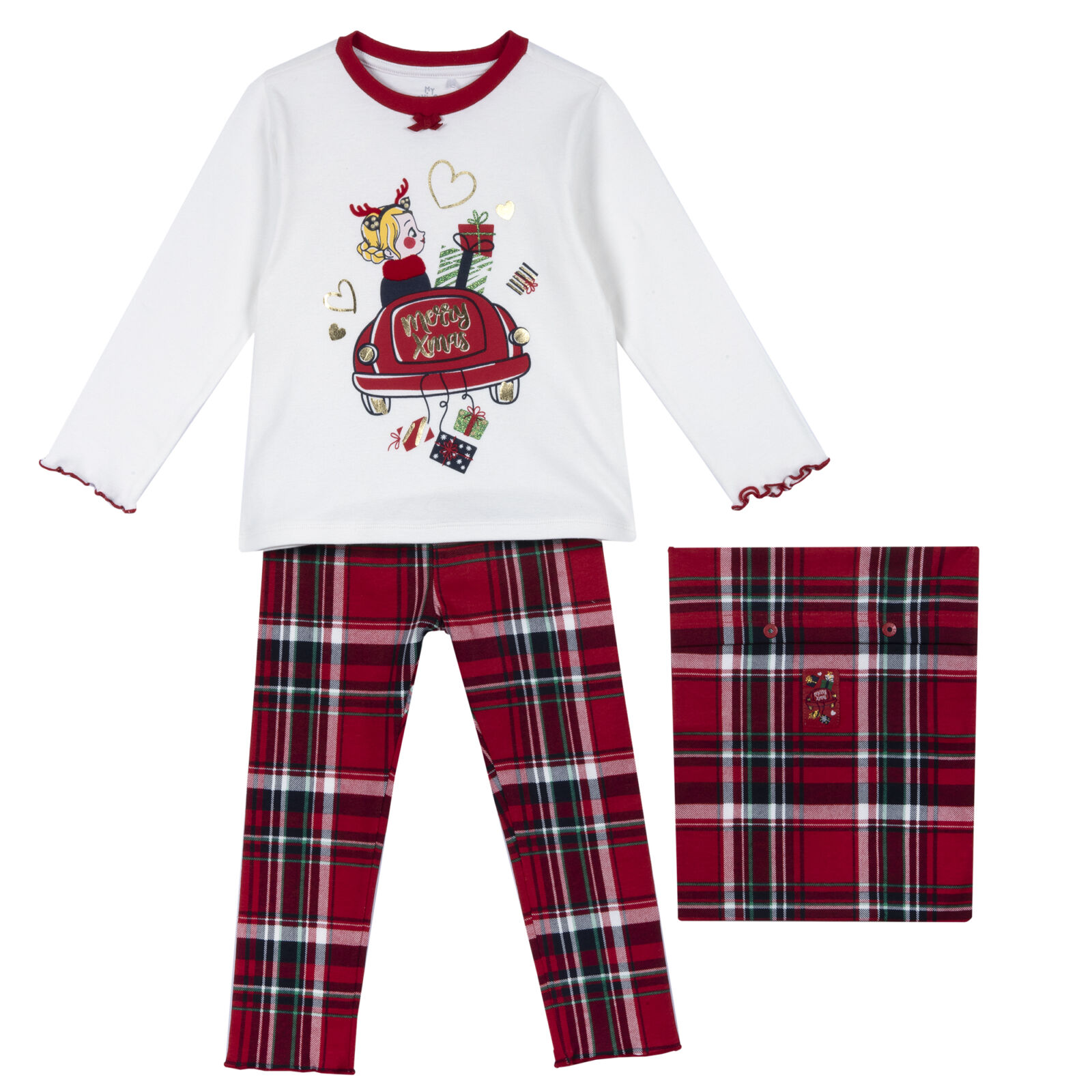 Pijama formata din tricou cu maneci lungi, imprimeu vesel de sarbatori si pantalon lung in carouri . Confortabila si placuta, poate fi depozitata in saculetul propriu. Este fabricata din 100% bumbac. Detine certificare OEKO-TEX si nu contine substante daunatoare.
