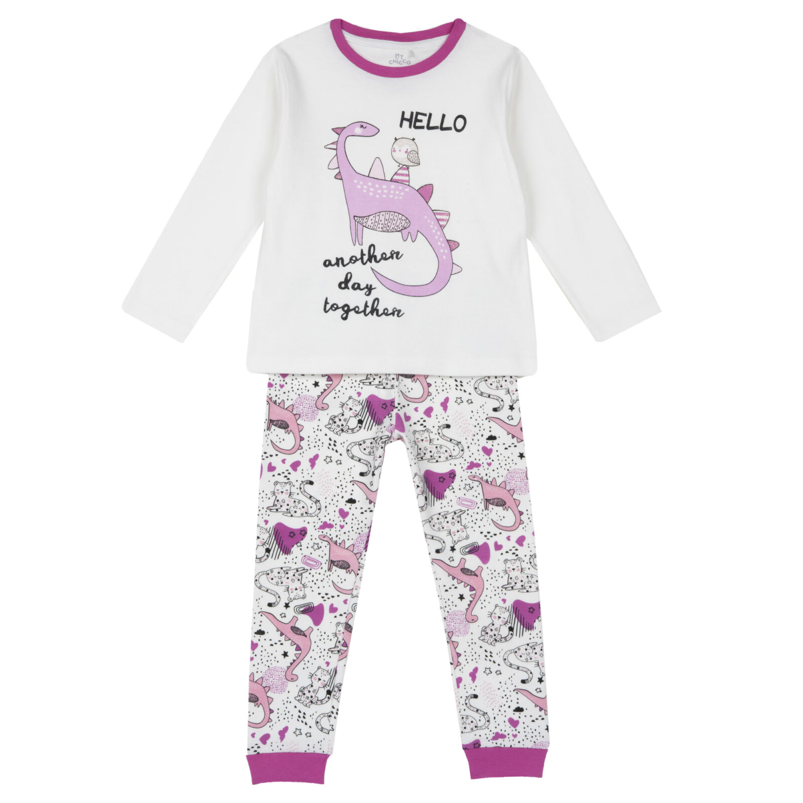 Pijama cu maneci si pantalon lung, cu dinozauri imprimati, realizata din 100% bumbac, detine certificare OEKO-TEX: calitate pentru copilul tau.
