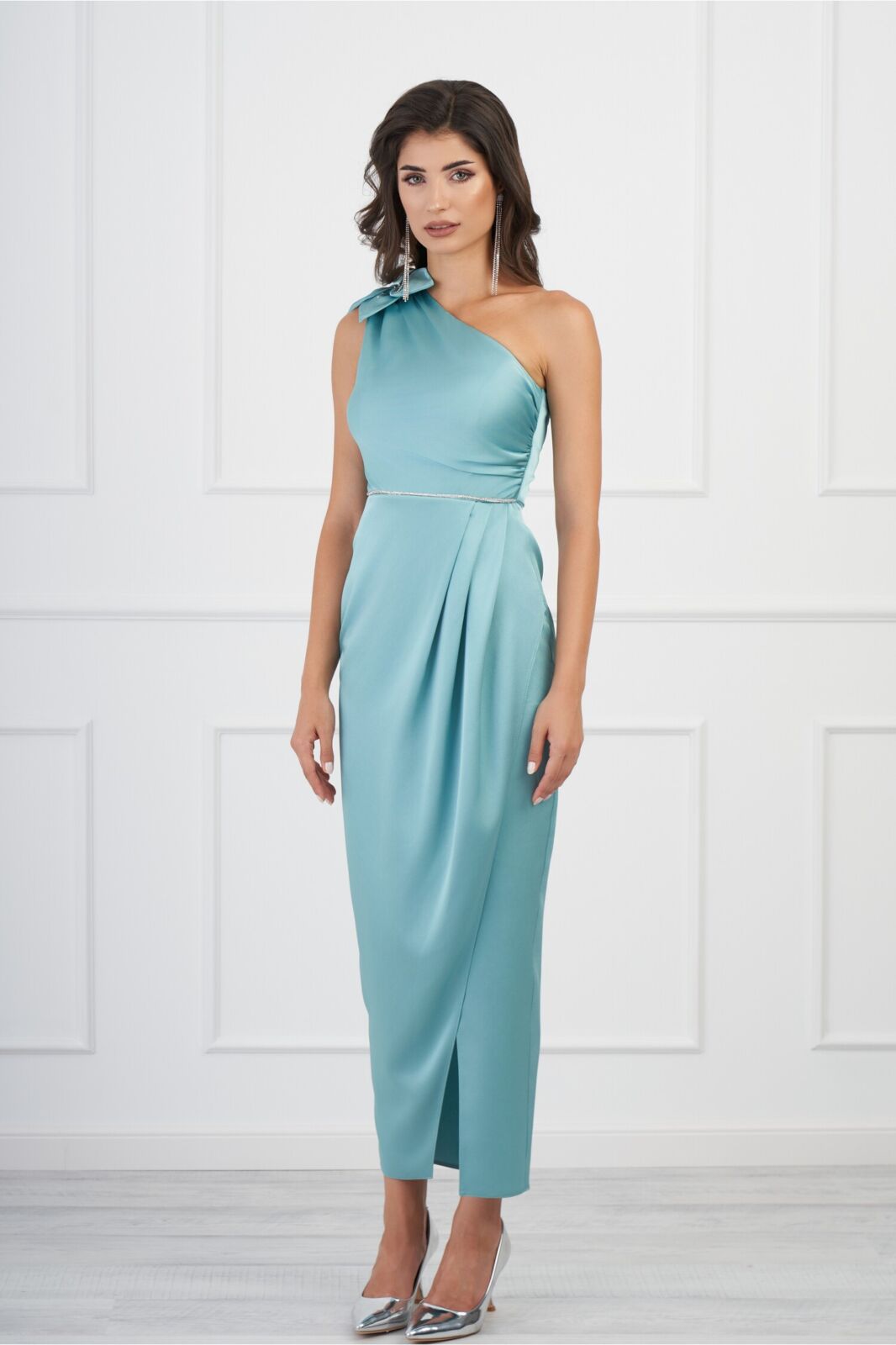 Black Friday 2025 Rochie Ginette verde mint cu floare pe umar si strasuri in talie