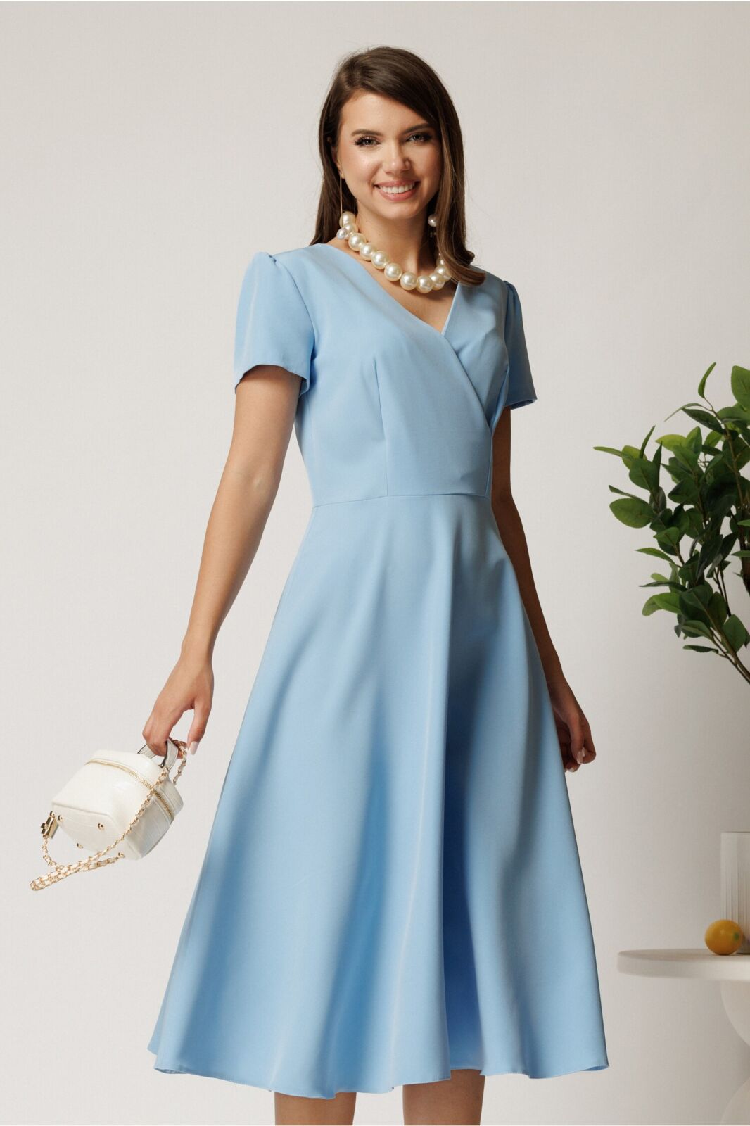 Black Friday 2025 Rochie midi blue din voal in clos cu decolteu petrecut