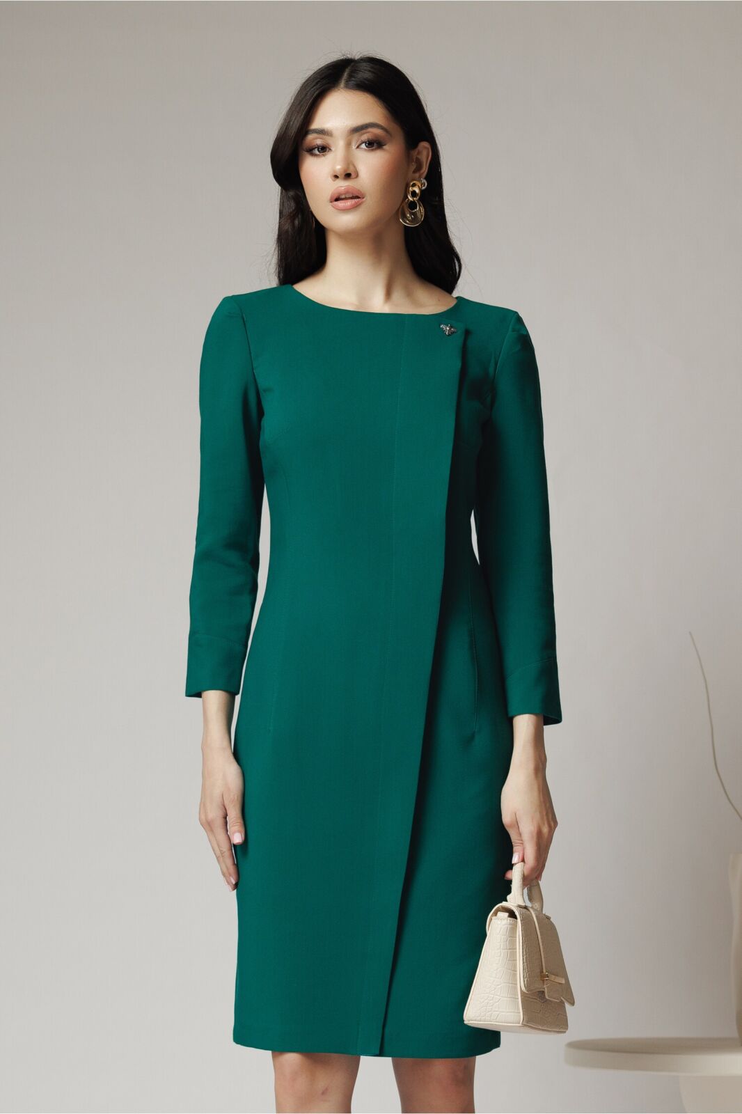 Black Friday 2025 Rochie office din stofa verde cu accesoriu discret