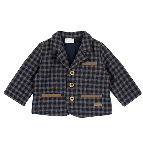 Sacou din flanela in carouri cu inchidere in fata si buzunare bordate. Sacoul este confectionat din 30% lana, 45% poliester si 25% acril iar dublura din 100% bumbac.