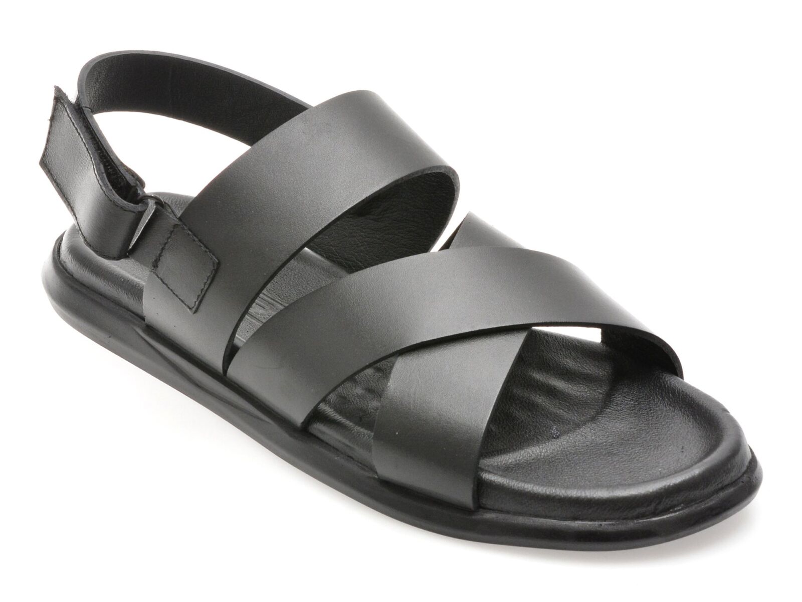 Black Friday 2025 Sandale OTTER negre, AL400, din piele naturala