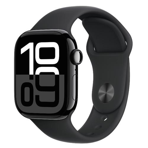 Smartwatch Apple Watch 10 GPS, Carcasa Jet Black Aluminium 42mm, ecran LTPO OLED, 64GB, curea silicon Black Sport Band M/L (Negru)