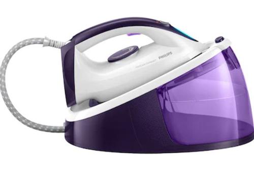 Black Friday 2022 Statie de calcat Philips FastCare Compact GC6740/30, 2400 W, 120 g/min, 5.2 bar, 1.5 L, Talpa ceramica, Smart Calc Clean (Alb/Violet)