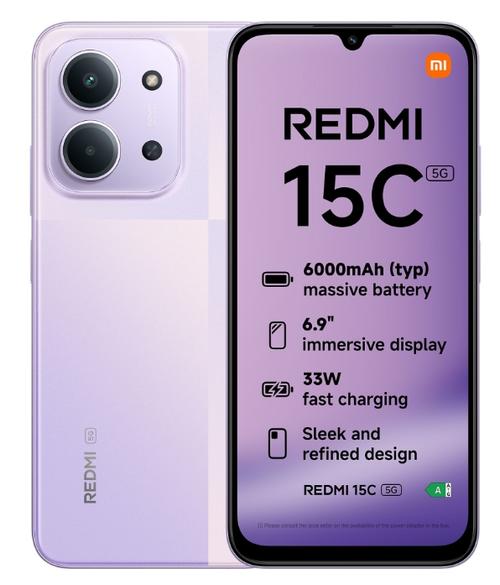 Telefon Mobil Xiaomi Redmi 15C 5G, Procesor Octa-Core, IPS LCD 6.9inch, 4GB RAM, 256GB Flash, Camera Duala 50 MP + QVGA, Wi-Fi, 5G, Dual Sim, Android (Mov)