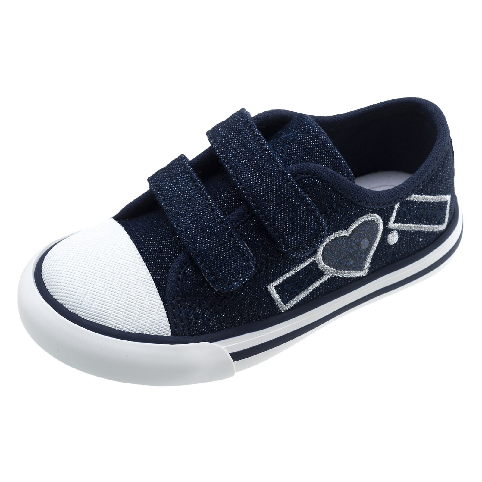Tenisi copii Chicco Cocos din material denim cu sclipici, avand sistem de inchidere prevazut cu arici, iar pe partea laterala are aplicata ca element decorativ o inimioara gri.